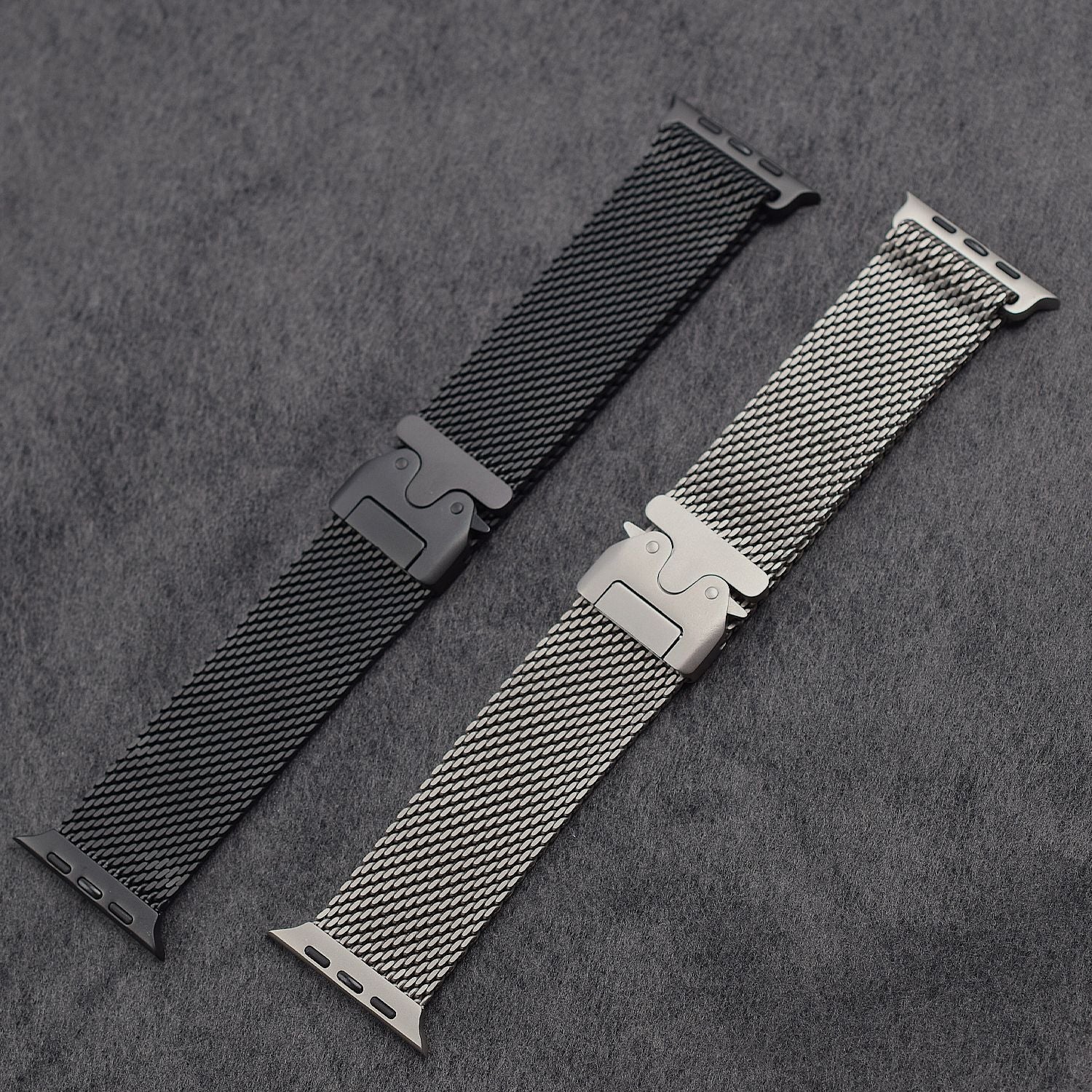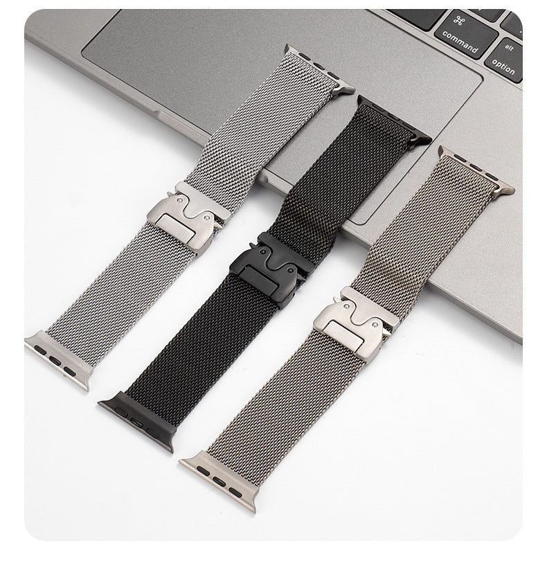 The FORLIPO Milanese Band features a robust parachute-style buckle, ensuring a secure and reliable lock. Inspired by military-grade gear, it offers maximum safety while adding a bold, rugged touch to your Apple Watch.